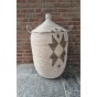 Een mooie mand met deksel handgemaakt in Senegal. De manden zijn gemaakt van olifantengras met wit plastic. Multifunctioneel te gebruiken als bijv. wasmand, speelgoedmand, dekenmand. Of gewoon als decoratie in de woonkamer.